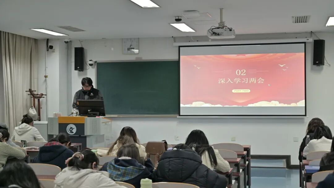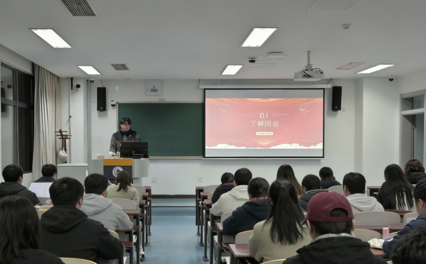 活动伊始,团支部书记邓飞扬围绕两会核心要义,从会议议程、政府工作报告重点、民生热点议题三个维度,为同学们展开系统讲解。结合“十五五”规划开局背景,重点解读了教育强国建设、新质生产力发展、民族团结进步等与青年成长紧密相关的内容,以团学领学筑牢思想根基,帮助同学们初步建立对两会精神的整体认知。